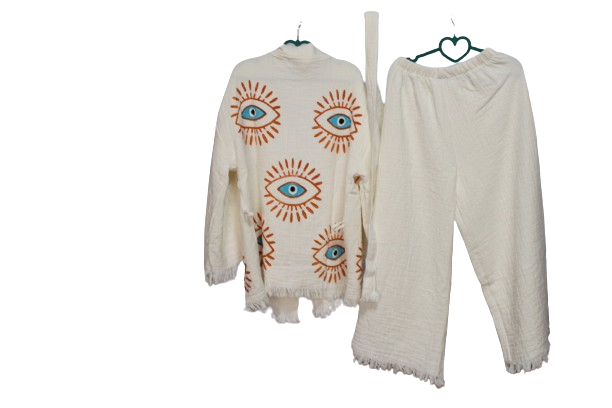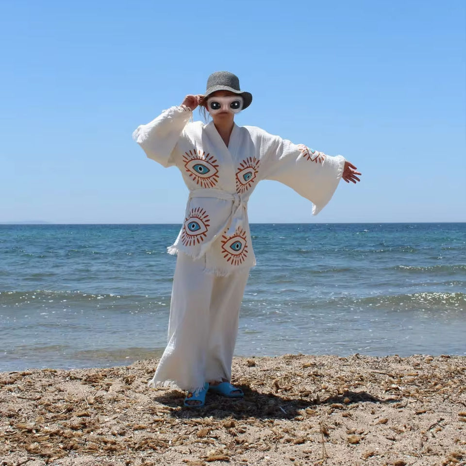 Suit Turkish Cotton Home Soft Washable Kimono White Colour Eye Pattern Beach Spa Hotel Home Good Quality Quick Drying