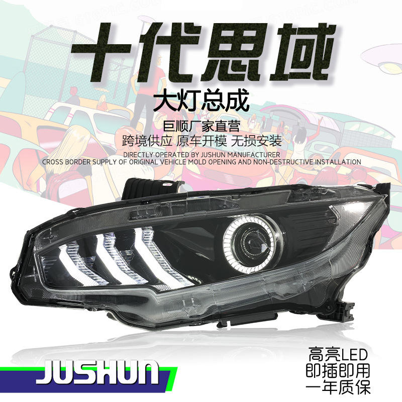 Suitable for 16-21 Honda 10th generation Civic headlight assembly modified Mustang LED daytime running light streamer lens