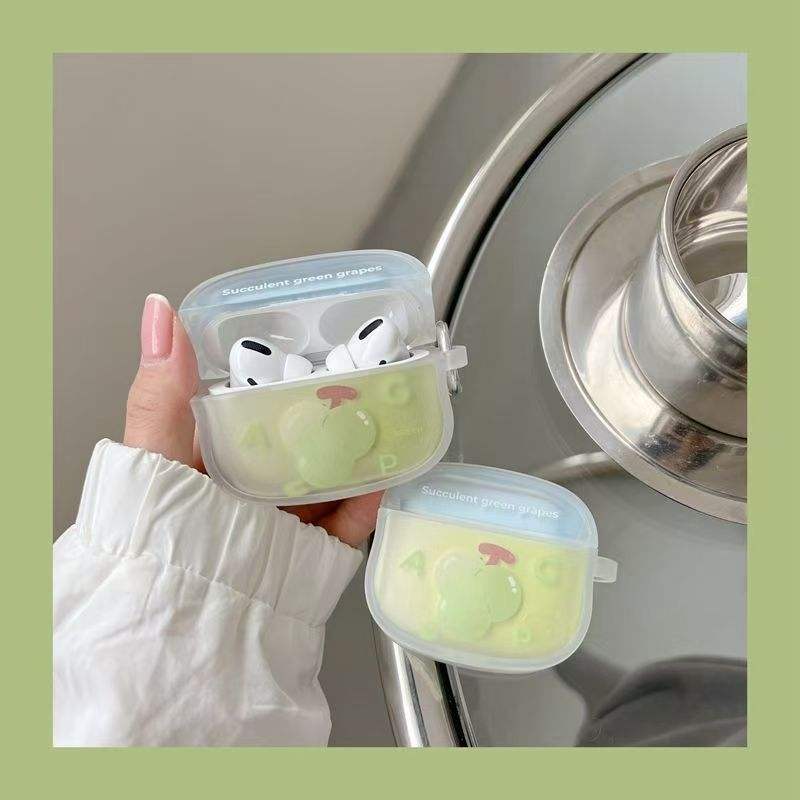 Suitable for AirPods Pro 3 Apple earphones, protective case, fresh gradient green grape, shockproof soft shell