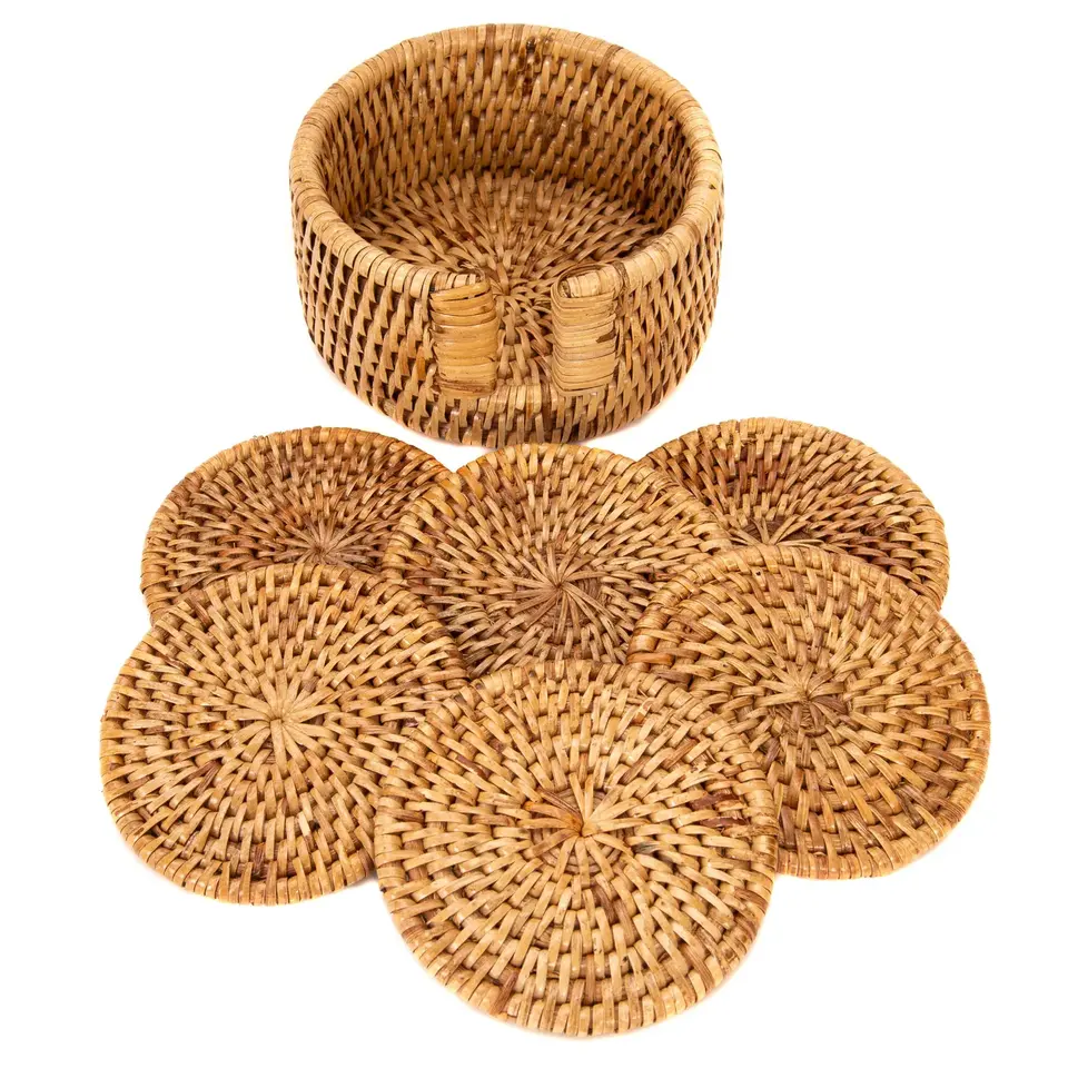 Suitable for Party or Wedding Rattan Boho Wicker Table Decor Set Coasters Natural Rattan Set of Coasters From Vietnam