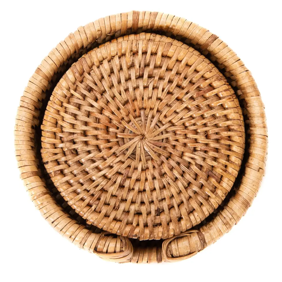Natural round rattan coasters