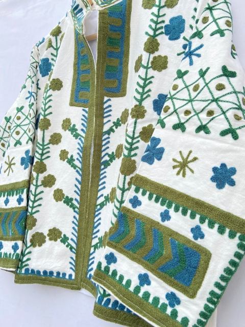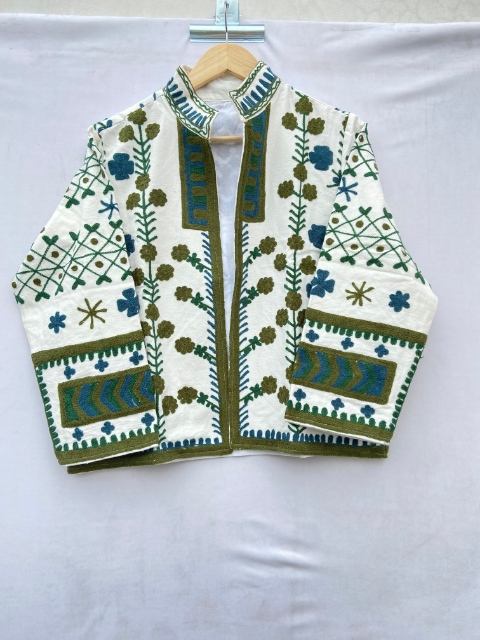 Sujani Jacket, Cotton Canvas Fabric New Suzani Embroidery Jacket For women -Casual Short Floral Jacket- Boho Style Street