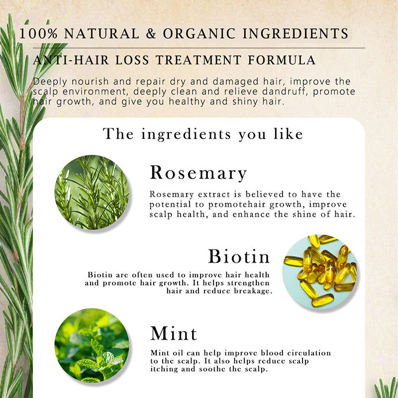 Sulfate Free Organic Rosemary Oil Shampoo Biotin Mint Hair Anti-loss Care Strengthening Anti-dandruff Shampoo and Conditioner
