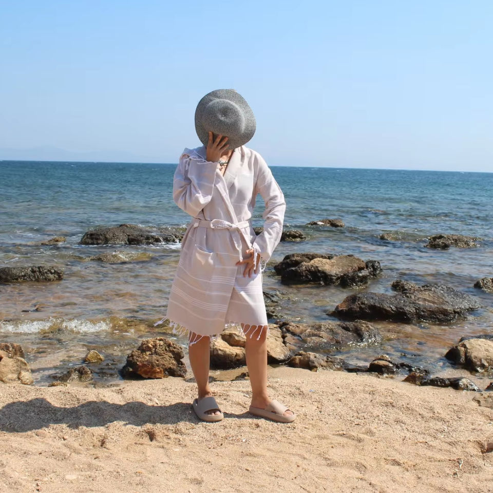 Sultan Peshtemal Cotton Turkish Bathrobe Hooded Quick Drying Cotton Long Sleeve Colorful Soft Bathrobe Women Men Bathrobe
