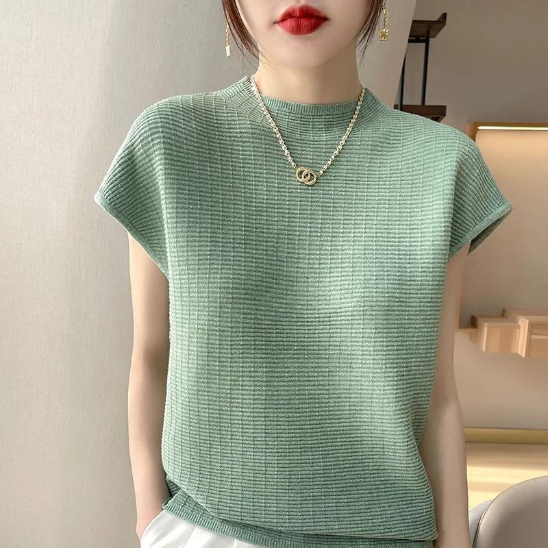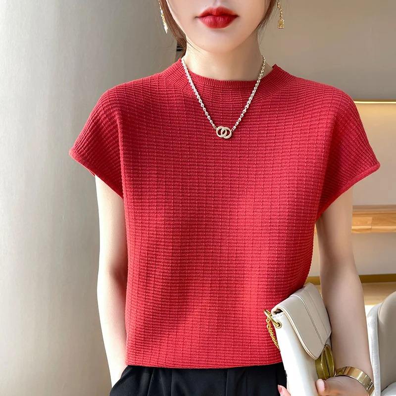 Summer 100% Mercerized Cotton Women Silk T-shirts O Neck Short Sleeve Loose Straight Tops Simple Casual Tees