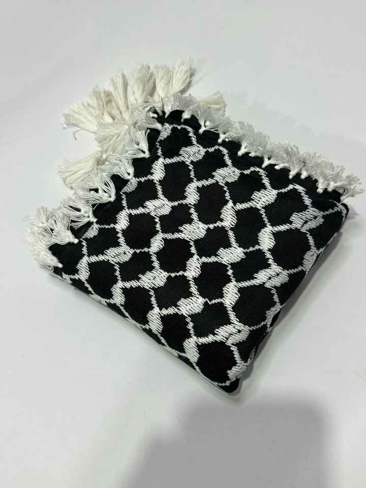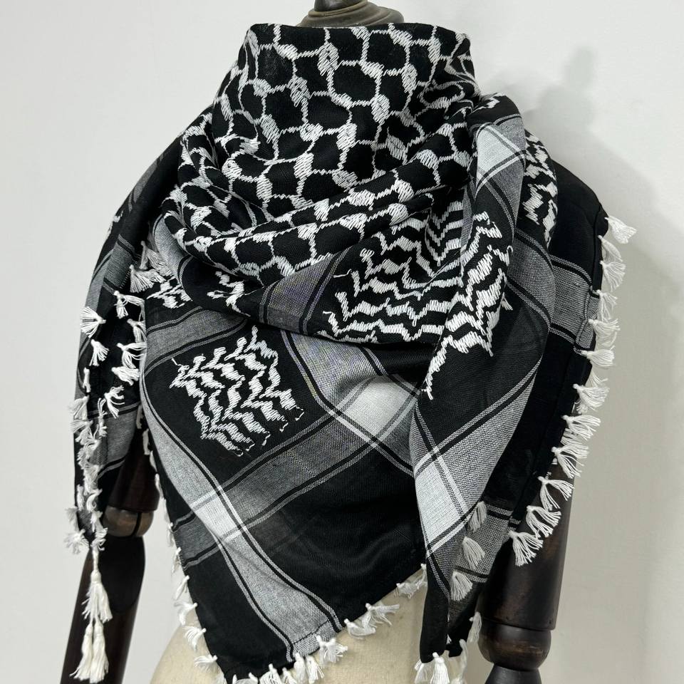 Summer 2024 Square Muslim Shemagh Arab Scarf Palestine White on Black Arafat Hatta 100% Cotton Unisex Scarves