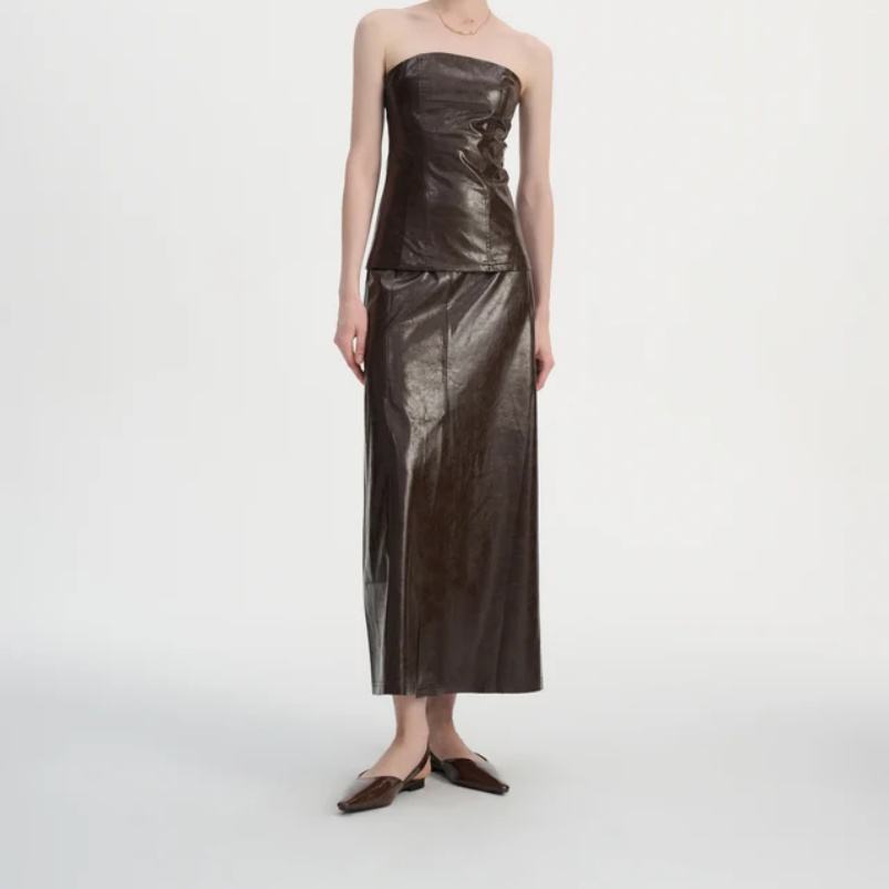 Summer 2024 Two Piece Set Women Clothing PU Leather Two Piece Outfits Set Ladies Sleeveless Tops Skirt Set 2 Piece