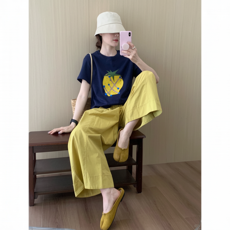 Summer 2025 Women's New Loose Fit Top Set White Short Sleeve T-shirt and Slimming Shorts Simple Print