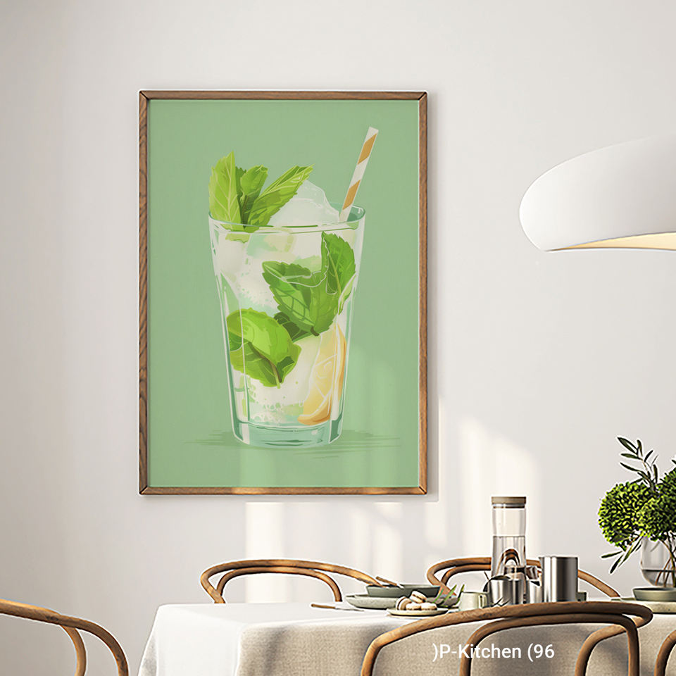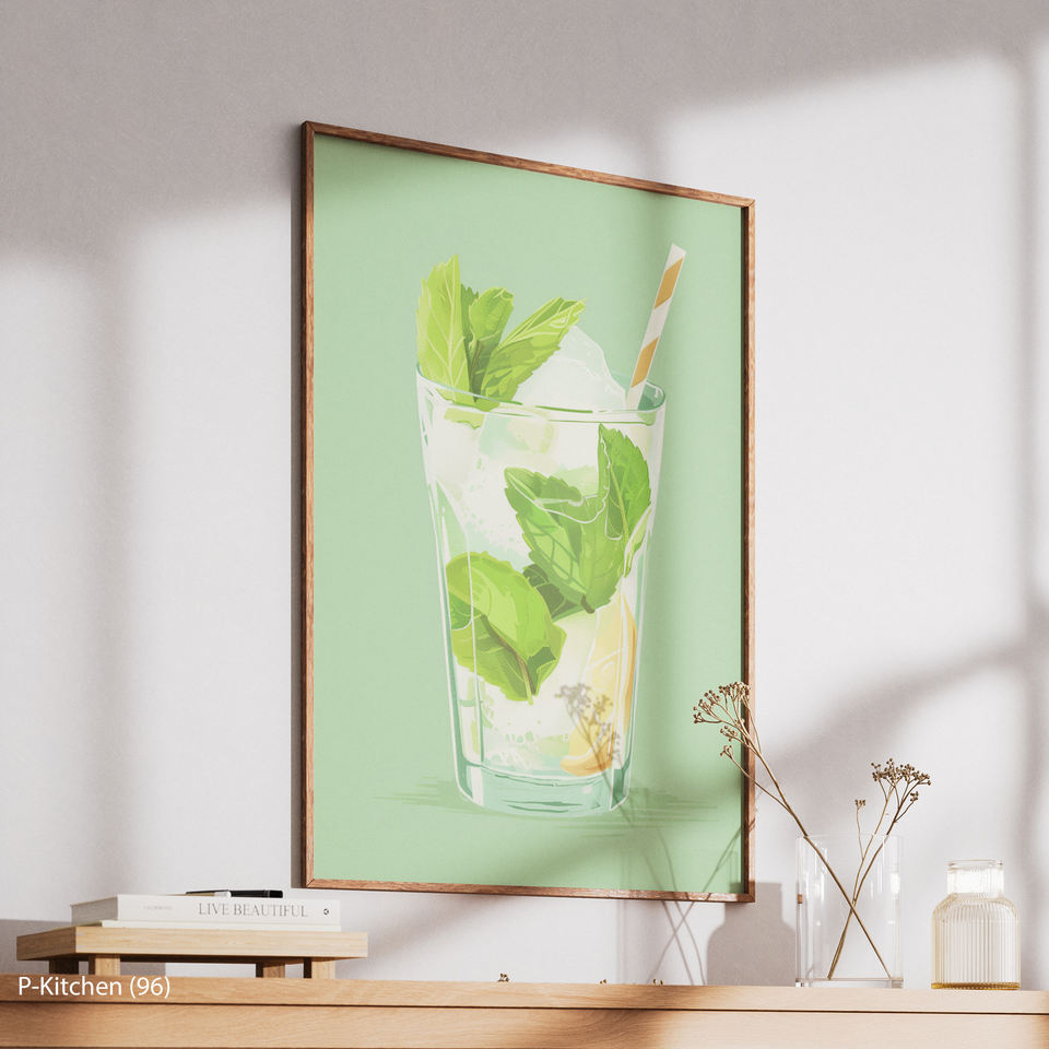 Summer Aperitif Canvas Prints Mojito Cocktail Illustration Aesthetic Beverage Poster Home Bar Decor
