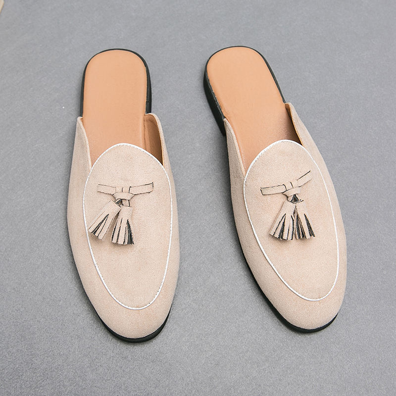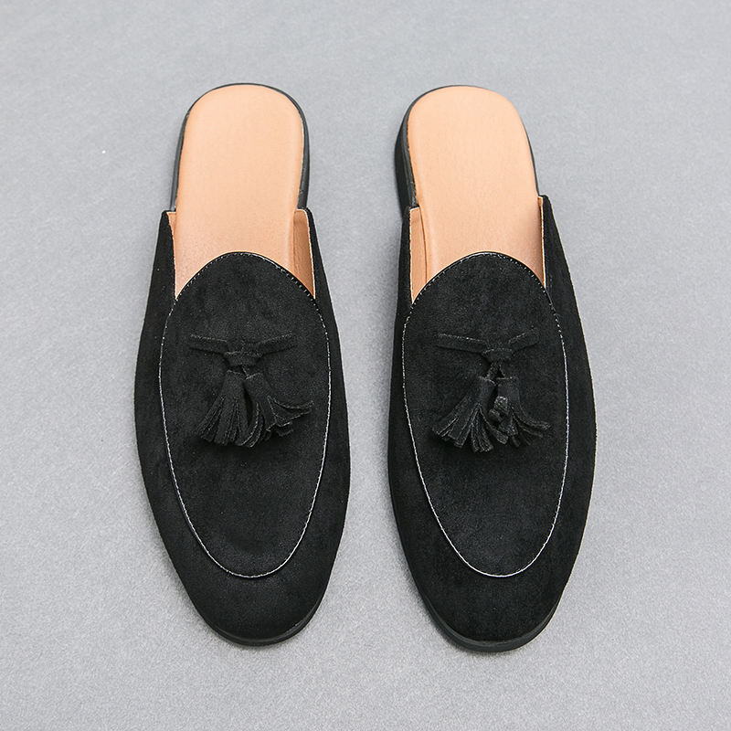 Summer Baotou Semi-slip Small Leather Shoes Breathable Men's Tassel Trend Slip-on Slip-on Shoes Sandals