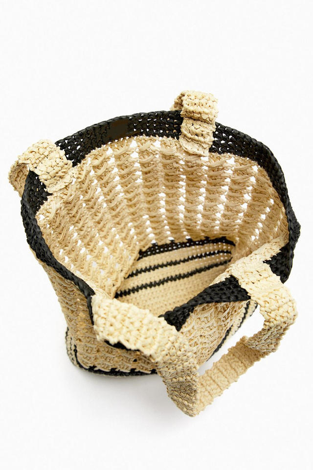 Summer Beach Fashion Women's Woven Color-Blocked Striped Shoulder Tote Bag Commuter Bag Hollow Crochet Bag