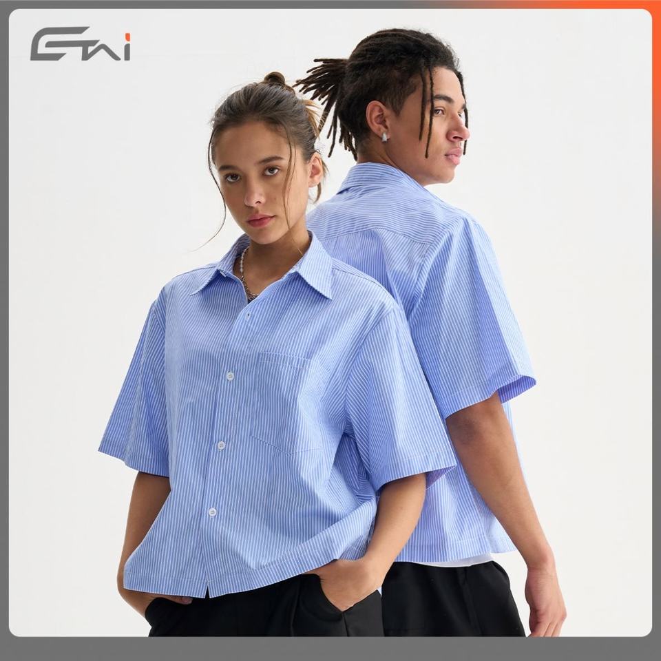 Summer Boxy Button up Shirt Cropped Dress Short Sleeve Custom Logo Striped Work Formal Shirts for Men Casual