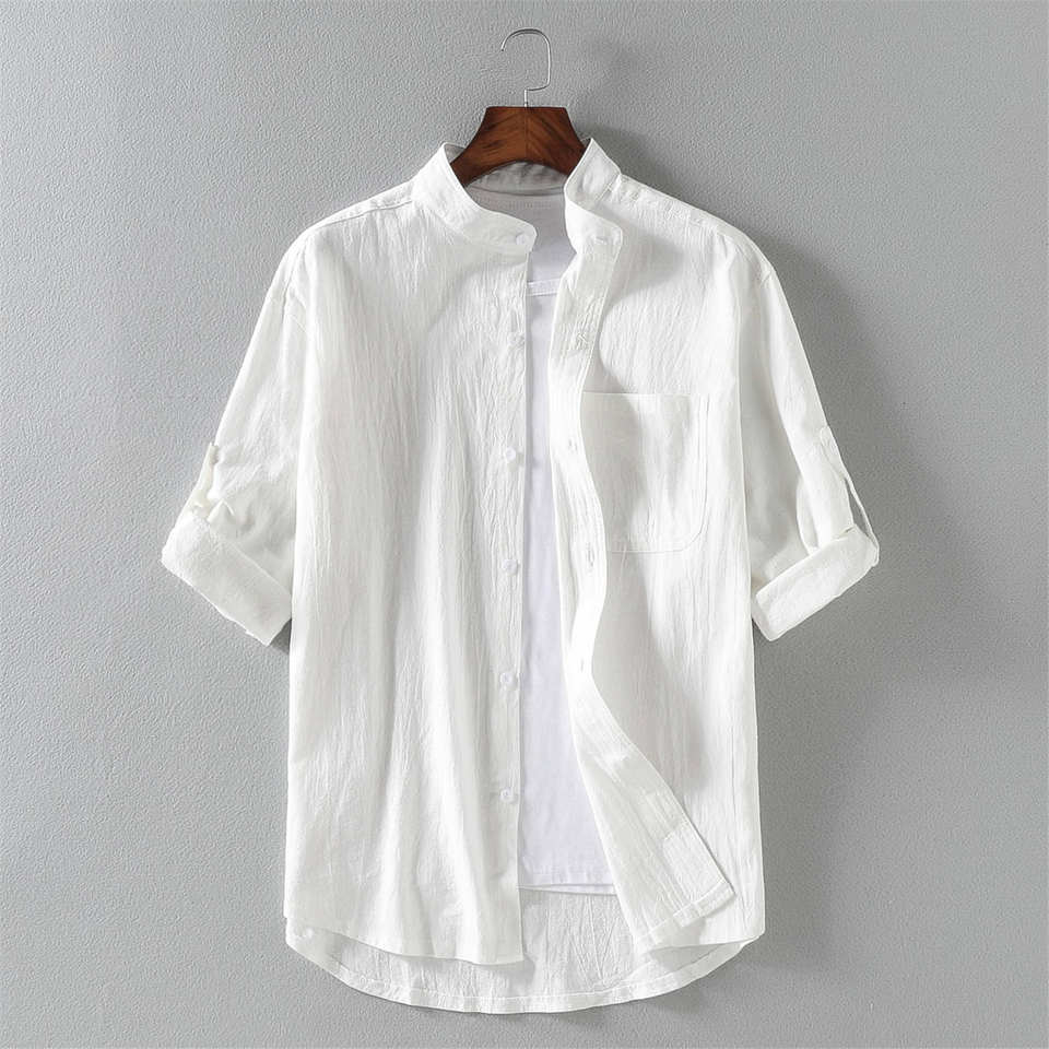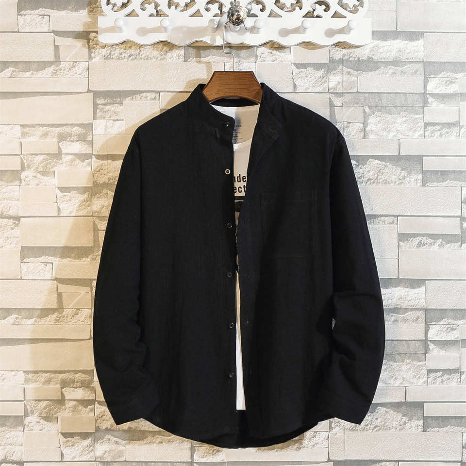 Summer Breathable Knitted Linen Cotton Satin Casual Anti-Wrinkle Plain Dyed Full Sleeve Men's Shirt