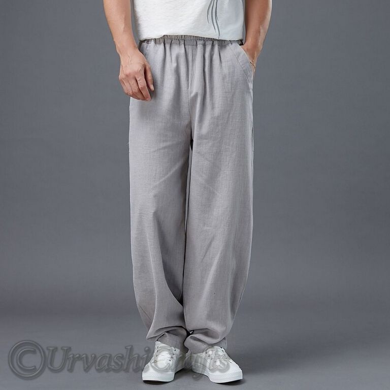Summer Casual Lightweight Pure Cotton Linen Men's Baggy Pants Trousers Custom Casual Track Harem Joggers Pants Men Sweatpants