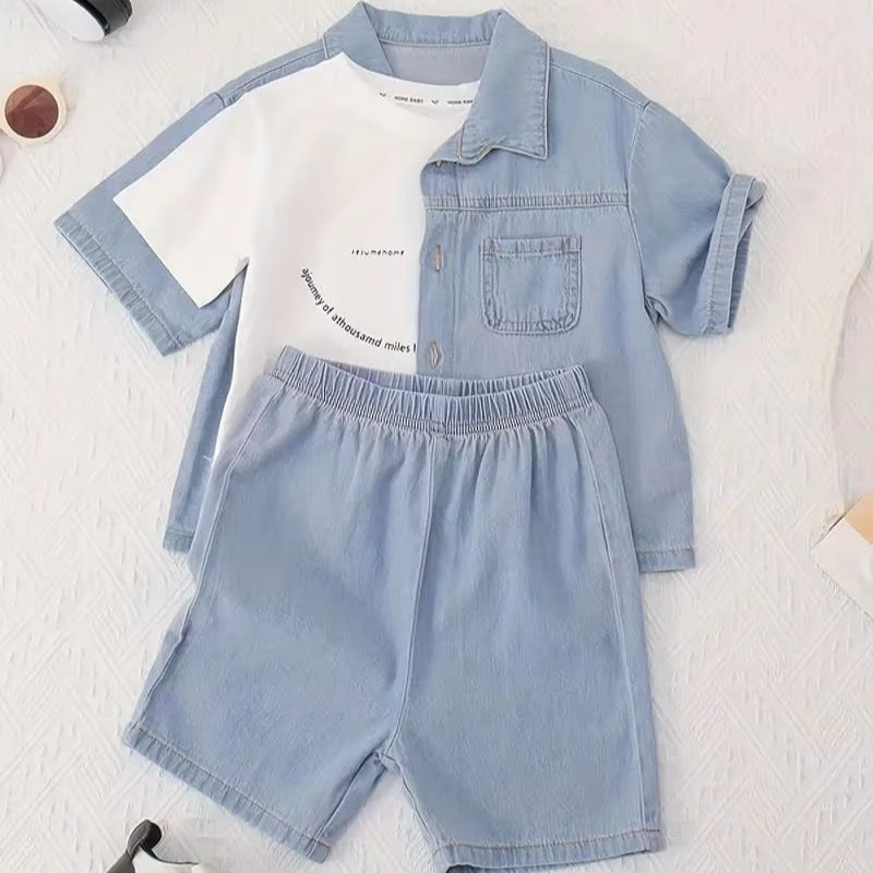 Summer Casual Short-Sleeved Cotton Suit for Boys & Girls Pure Cotton T-Shirts with Cartoon Pattern Baby Clothes