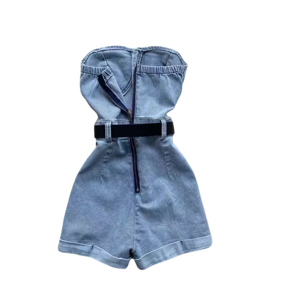 Summer Casual Strapless Jumpsuit for Women Sleeveless High Waist Denim Short Jumpsuit Ladies Casual Overalls