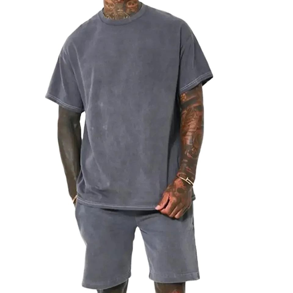 Summer Clothing Men T-Shirt Short Set Acid Wash Lightweight 100% Cotton Fleece Oversized T Shirt and Sweat Shorts Set for Men