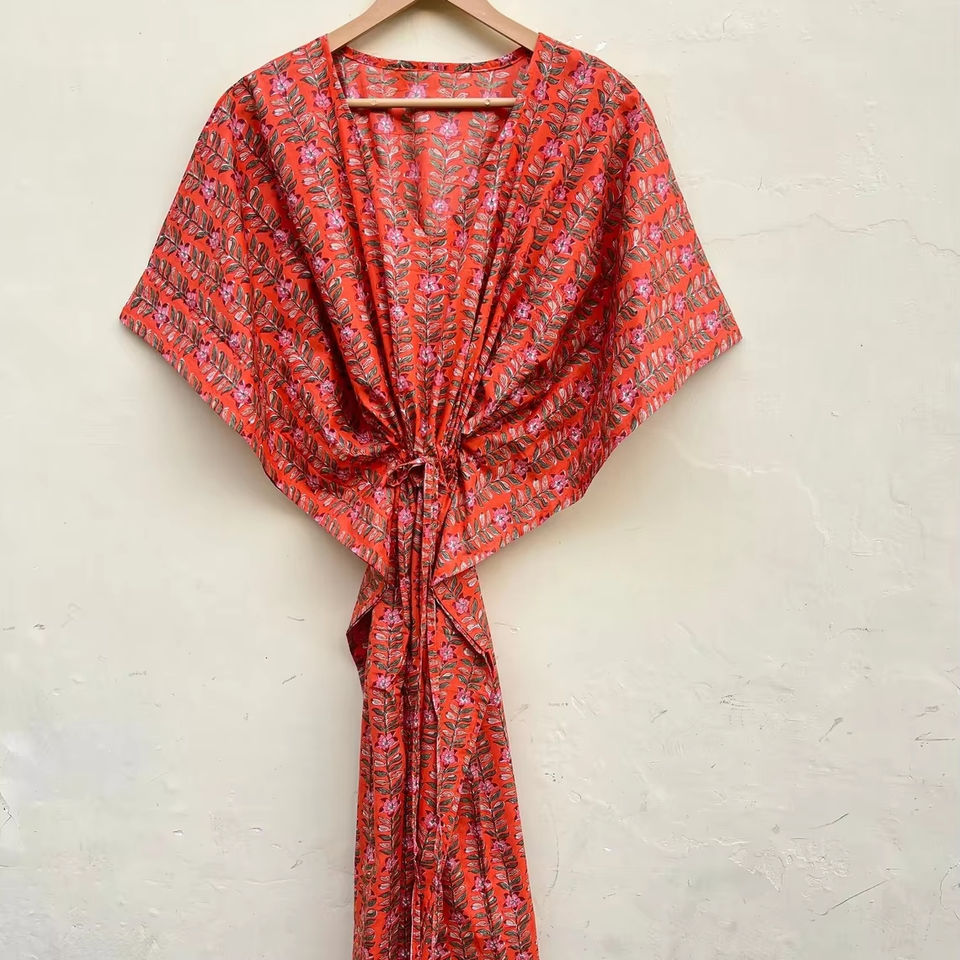 Summer Cotton Kaftan Beach Cover Up Kaftan Dress Indian Block Print Cotton Kaftan