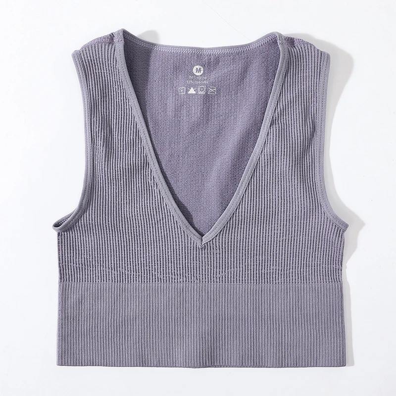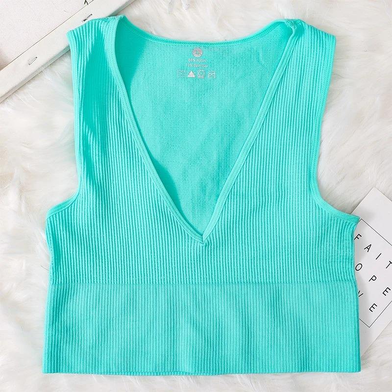 Summer Crop Top Women V-Neck Tanks Sexy Lingerie Sleeveless Short Tee Rib Fitness Underwear Sport Seamless Bra Tops Camisole
