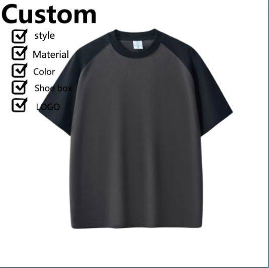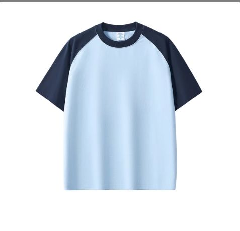 Summer Custom Heavy Weight Cotton 300g Raglan Sleeve T-shirt Short Sleeve Round Neck Color Block Top Tee Shirt