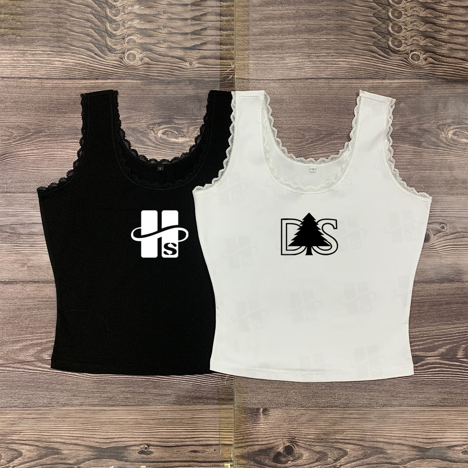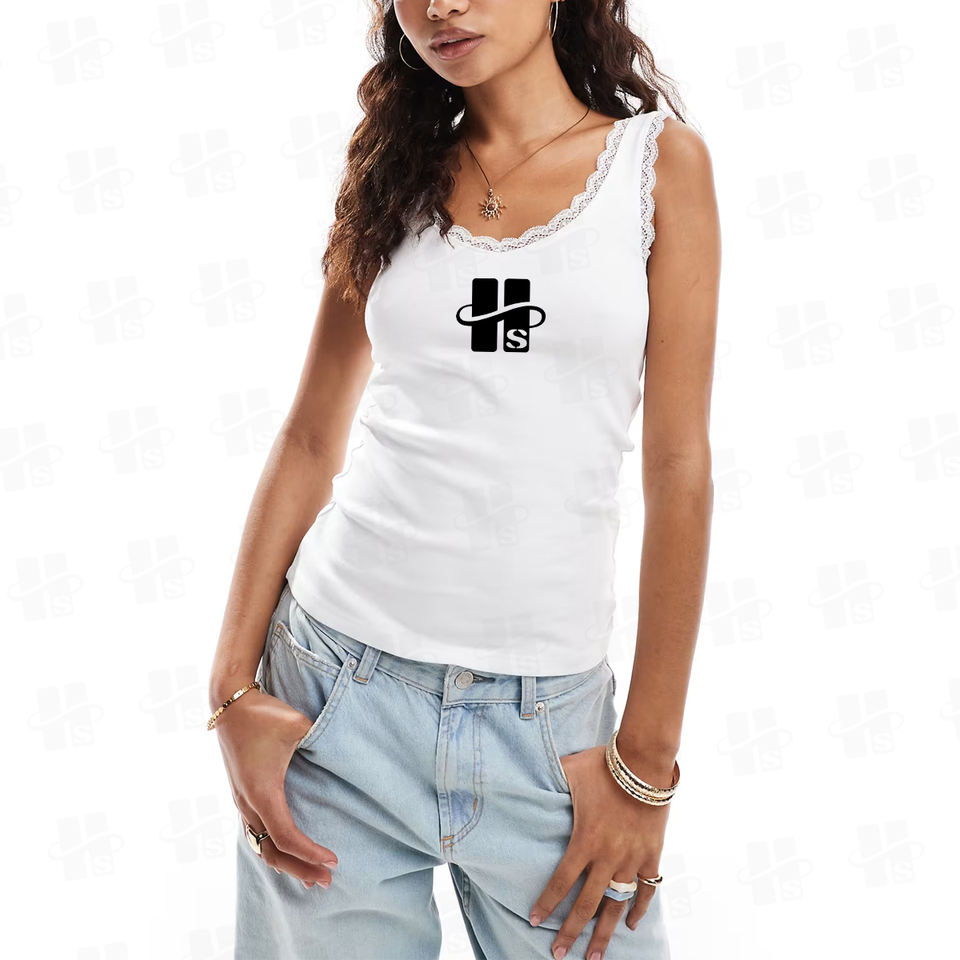 Summer Custom Screen Print Slim Fit Inner Wear Tank Top 95 Cotton 5 Spandex Blend High Elastic Women's Casual Lace Tank Top