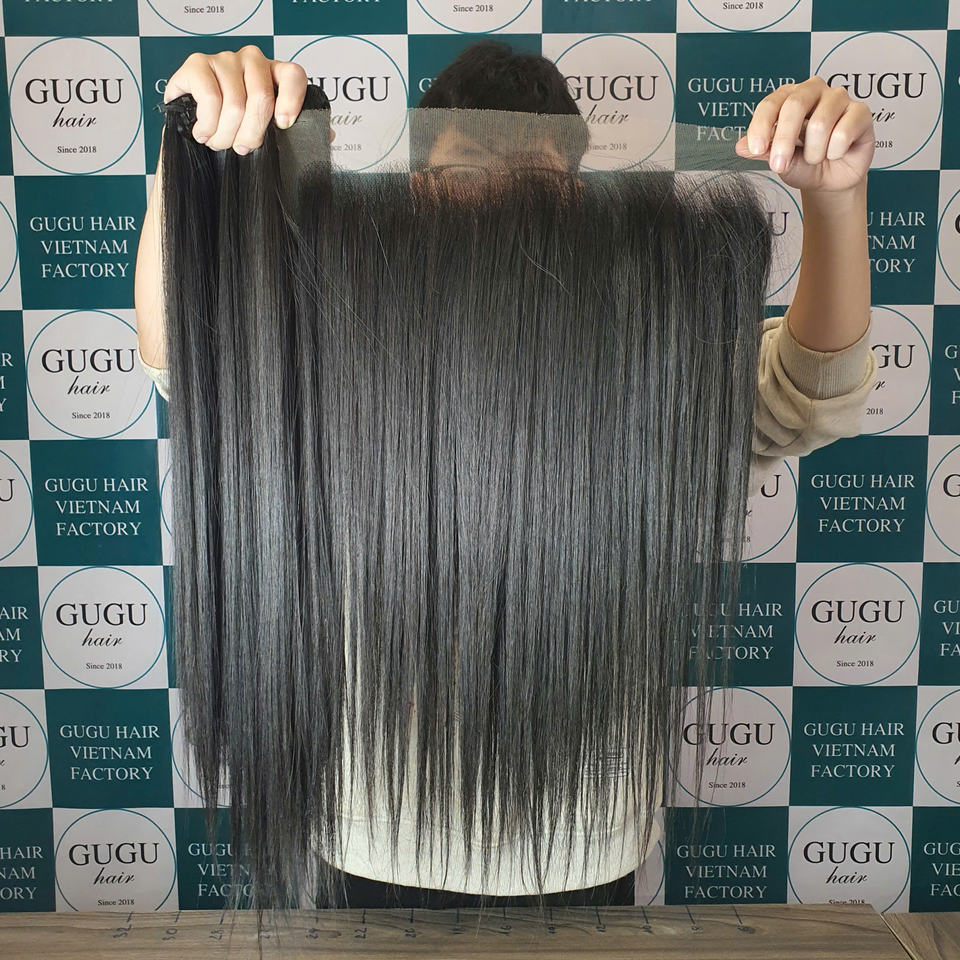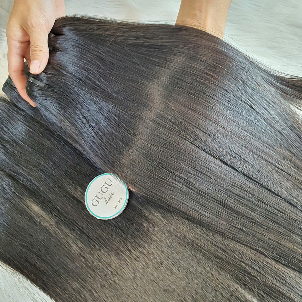 Summer Discounts! GUGU HAIR Black Straight Hair Extensions 100% Vietnamese Human Hair 20/16 Inches Machine Double Weft HD Lace