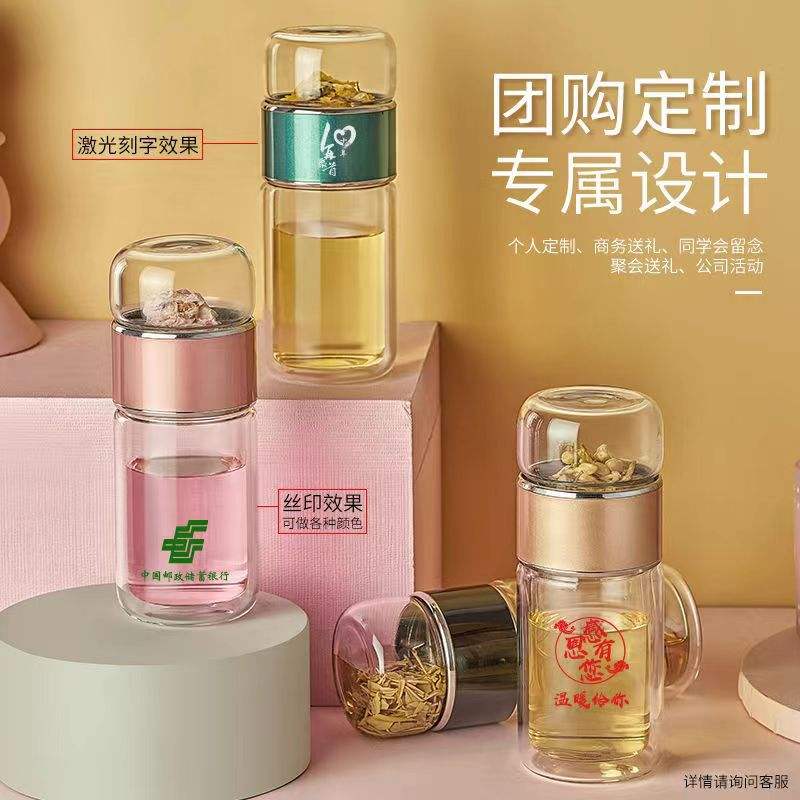 Summer Double Wall Insulated Glass Tea Cup With Filter Mini Infuser Business Gift 5 Colors Available