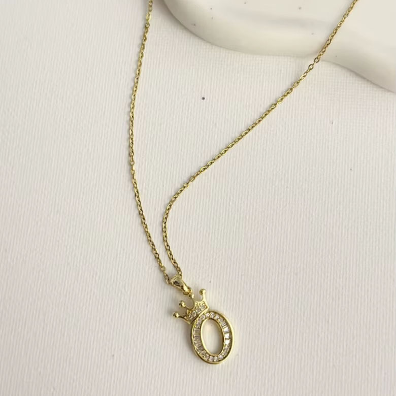 Summer Essential Moonriver Women's Fashion Choker Necklace Simple Style Copper Chain 'O' Little Crown Design Stainless Steel