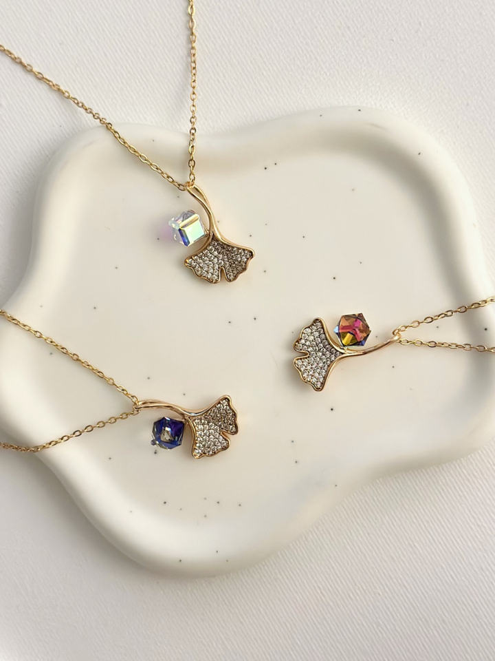 Summer Essential Moonriver Women's Ginkgo Diamond Leaves Beads Chain Simple Style Fashion Choker Necklace Copper Material