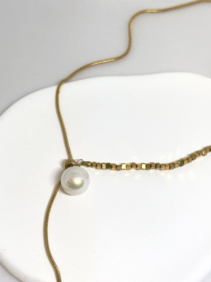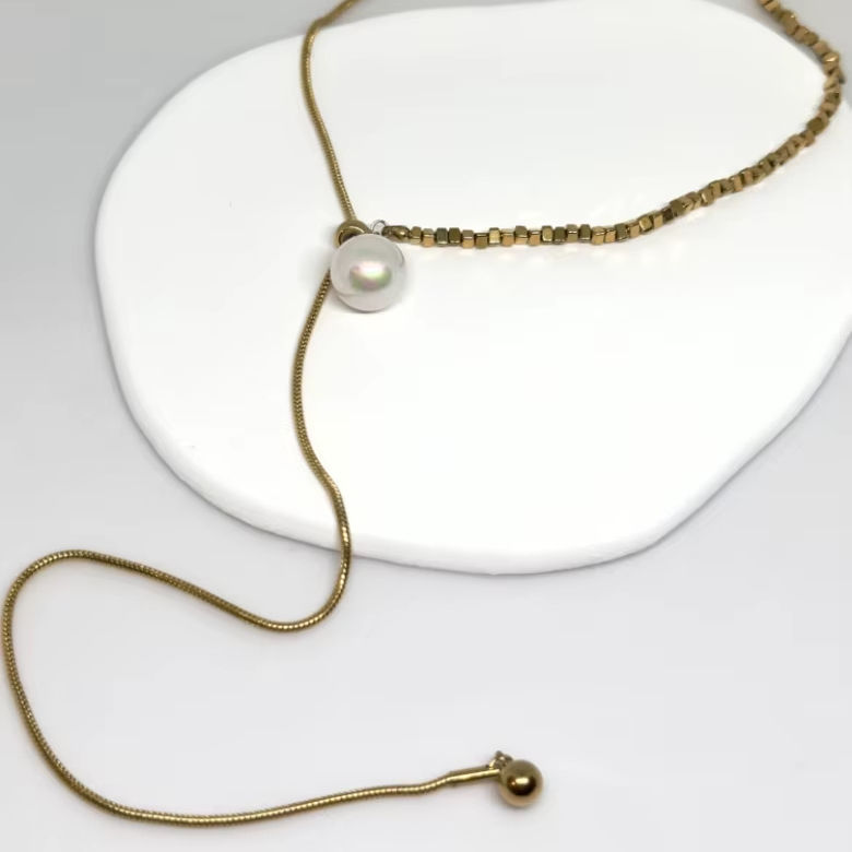 Summer Essential Stylish Bohemian MOONRIVER Women's Fashion Chokers Necklaces Stainless Steel Pearl Design Strand Necklace