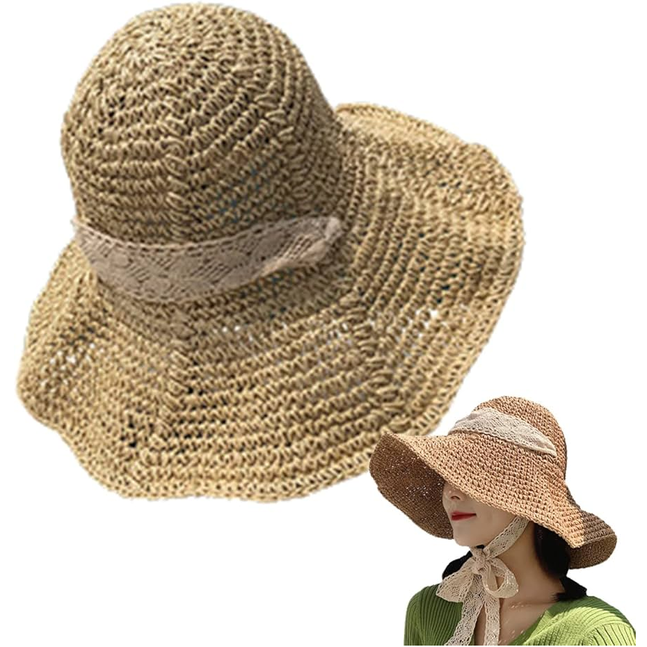 Summer Fashion Straw Hat Sun Hats Girls Large Brim Summer Beach Round Rattan Hat - Vietnam Handicraft Handmade