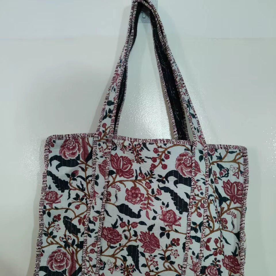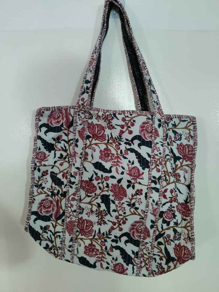 Summer Fashion Style Large Cotton Tote Bag Quilted Cotton Hand Block Printed Tote Bag Traditional Indian Handcrafted Tote Bag