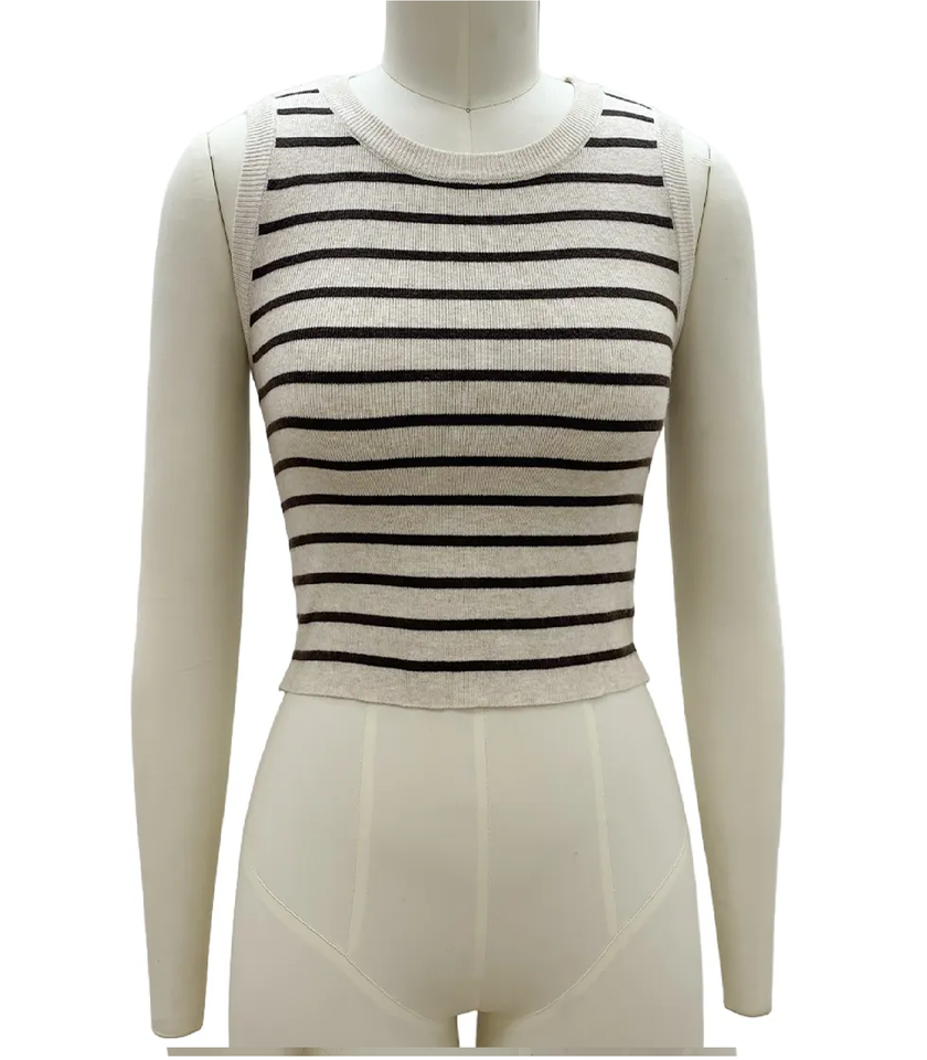 Summer Fashion Tank Top Slim Knitted Jersey Solid Color Sleeveless Striped Vest Plus Size Beading Lace for Daily Casual Wear