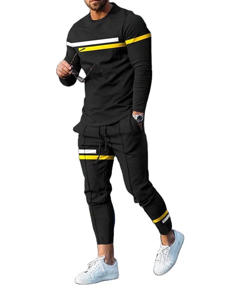 Summer Fashion Tracksuit Set for Men 2 Piece Outfit Long Sleeve T Shirt Trousers Pants Sweatpants Sport Suit Oversized Clothes