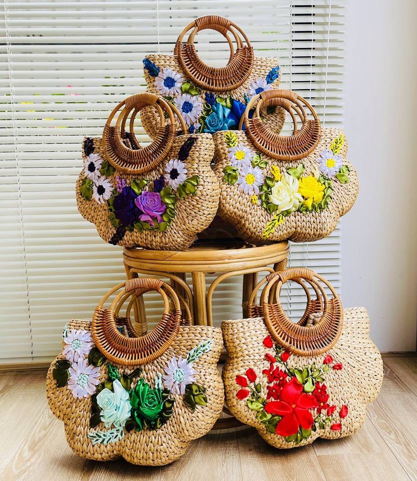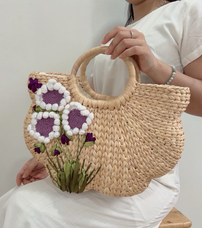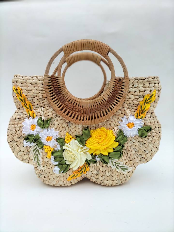 Summer Fashionable Women's Open-Top Handbag Collection Handcrafted Natural Water Hyacinth Eco-Friendly 1-1.9L Capacity Cotton