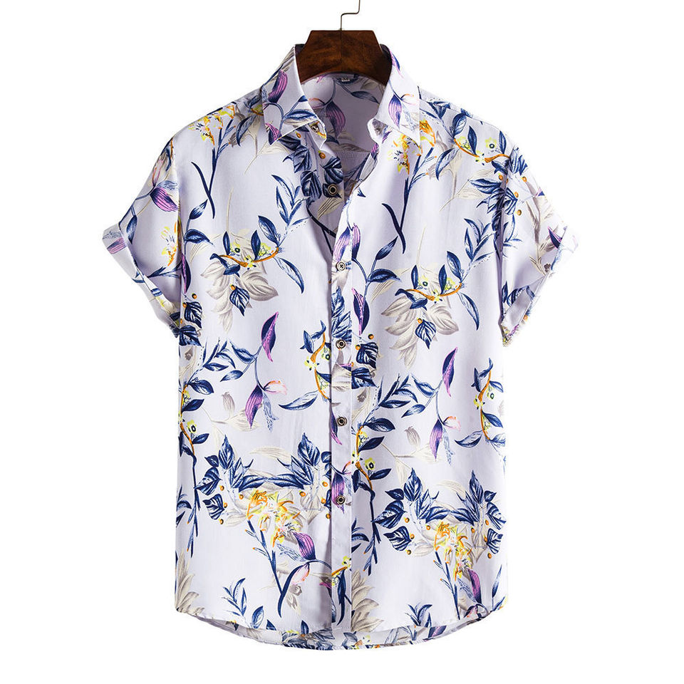 Summer Floral Printed Men's Trendy Short-Sleeved Casual Shirt Hawaiian Style Loose Large Size Beach Shirt for Men