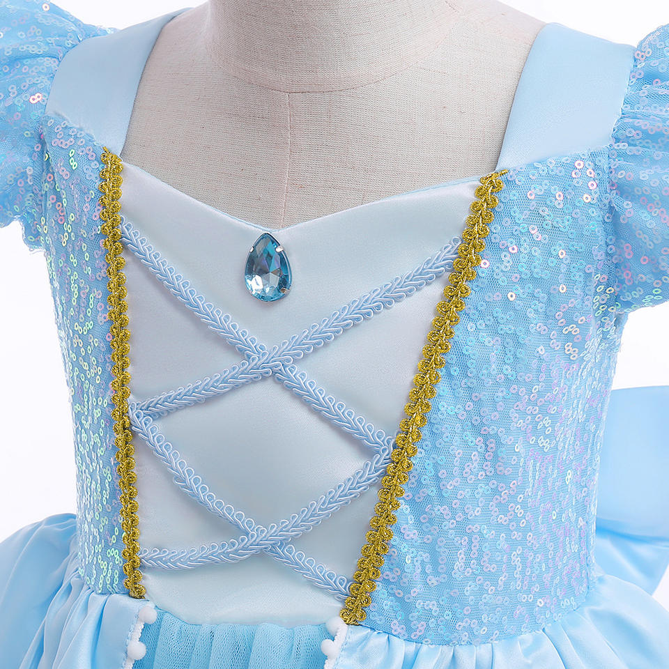 Summer Girls' Apparel for Cinderella Princess Formal Sequin Spliced Mesh Girls Dresses with a Big Bow