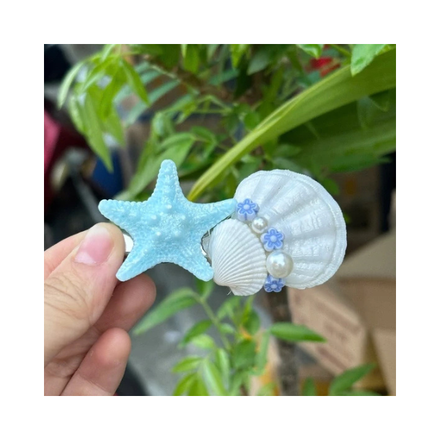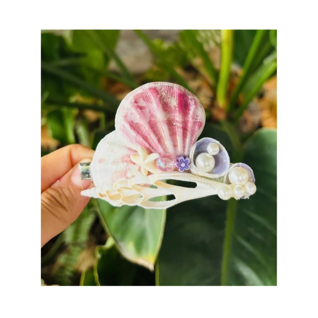 Summer Hair Accessory for Girls Women - Clam Shell Hair Clip - Handmade Beach Style Seashell Hair Claw Ocean Gift Idea