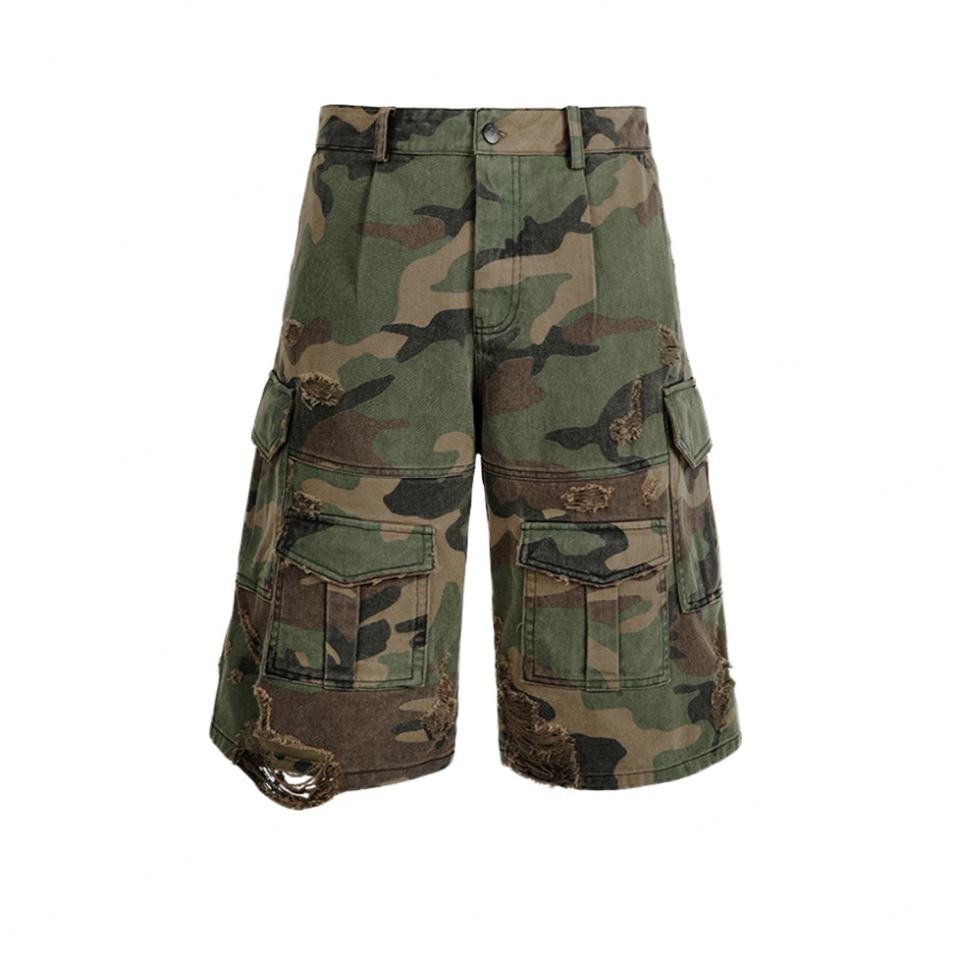 Summer High Quality Comfy Cotton Casual Cargo Shorts Custom logo Baggy Pants 7 Pockets Distressed Camouflage Men's Shorts