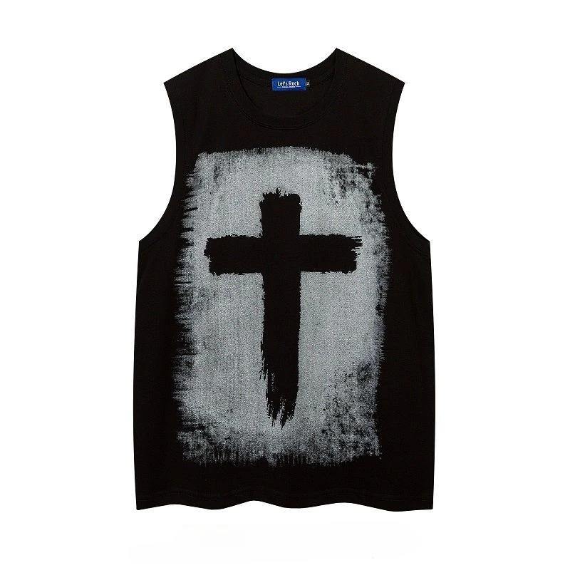 Summer Hip Hop Vests with Chain European and American Streetwear Vest Men's Washed Ripped Necklace Sleeveless Tshirts Tops