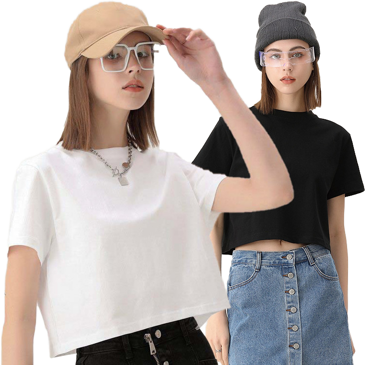 Summer Hot Sale Women Knitted Cropped T-shirt 210gsm Breathable Plain Cotton Shirts Custom Logo T-shirt for men