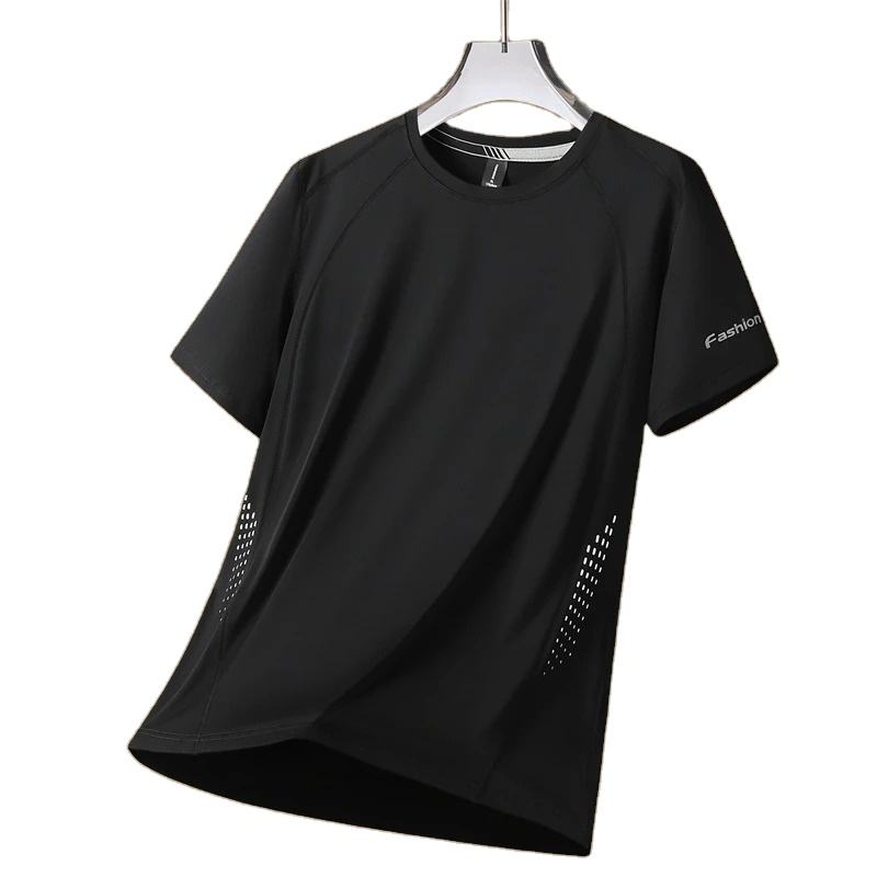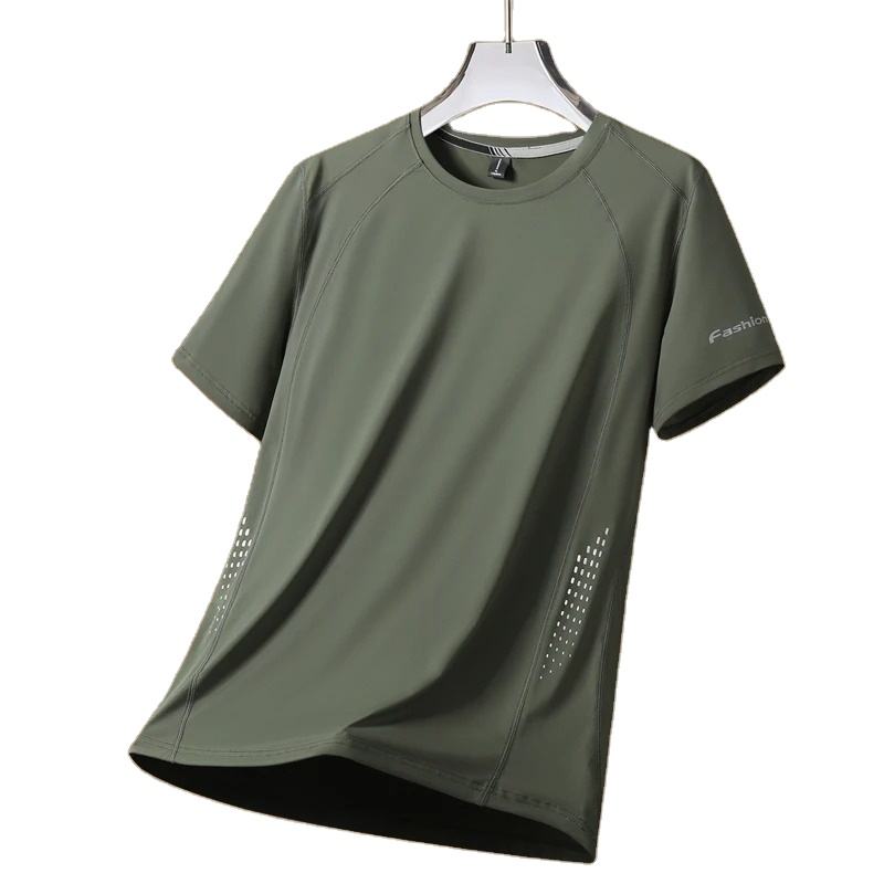Summer Ice Silk Men's T-shirts High Quality Short Sleeve Solid Color Breathable Loose Round Collar Casual Man Tees
