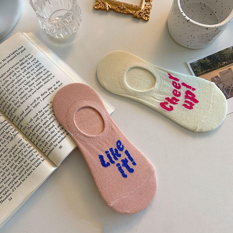Summer Japanese Style Solid Color Letter Boat Socks Breathable Sweat-Absorbing Odor-Resistant Invisible Socks For Women