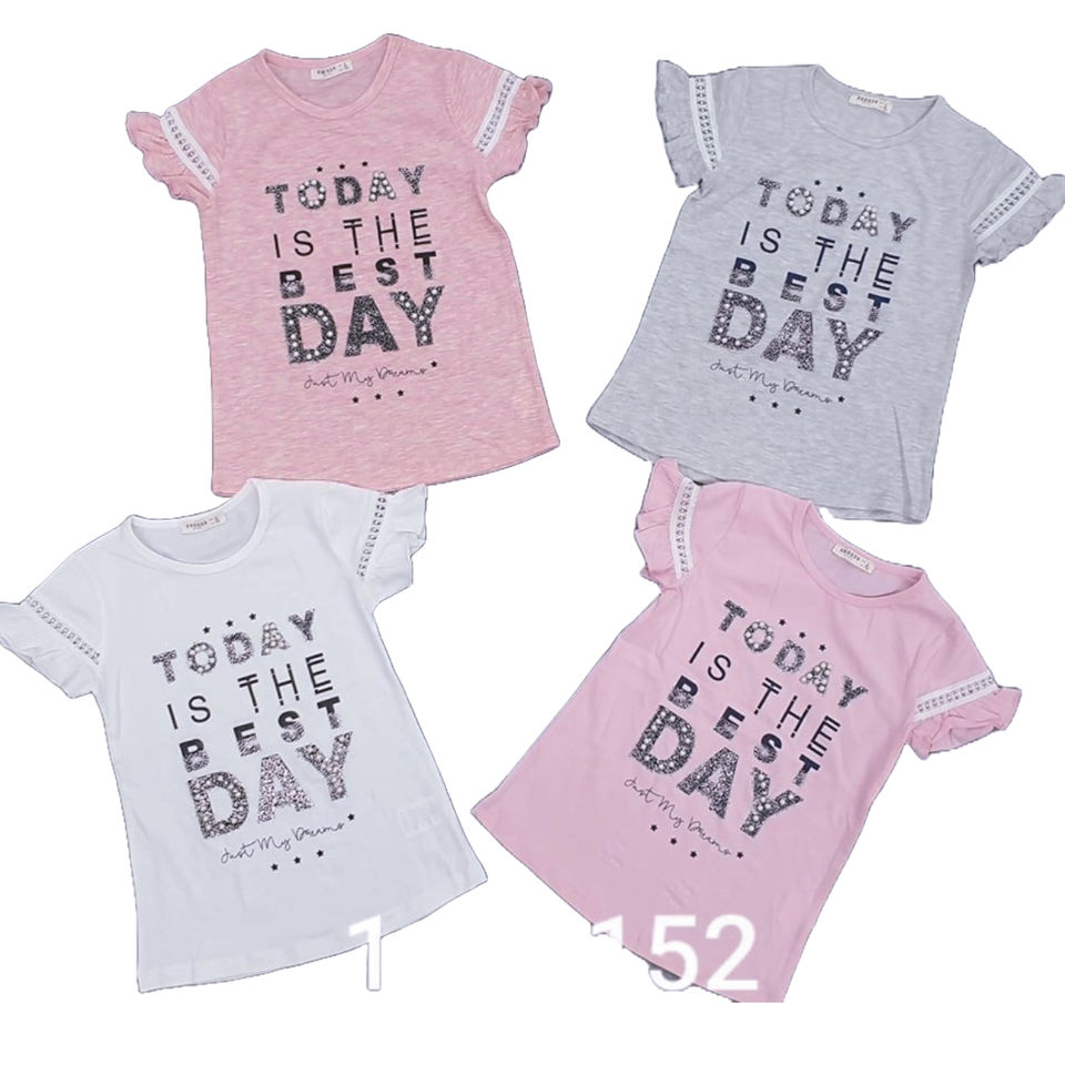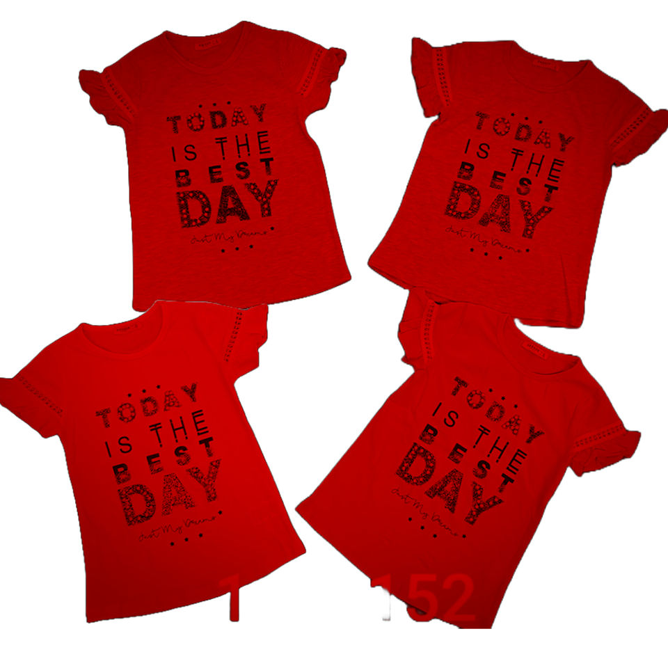 Summer Kids Girls Solid Frock Fancy Short Sleeve Dress Solis Colour Screen Print Light Weight Wholesale Cheap Girls Summer Dress