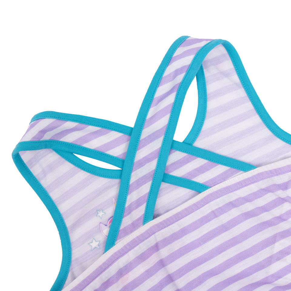 Product name:Girls' Unicorn Romper Purple Striped Sleeveless Pajama with Tie Waist