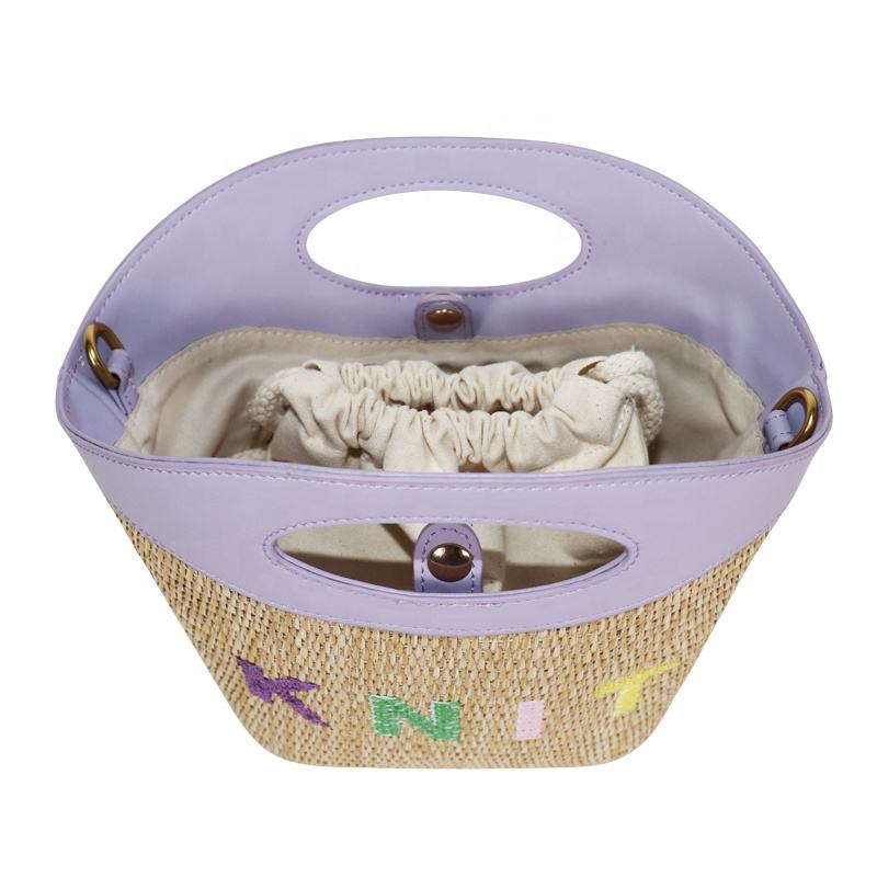 Summer Letters Embroidery Knitting Bags the New Hot Handbags 2024 Light Lady Straw Bucket Bags Lady Design Purses for Women