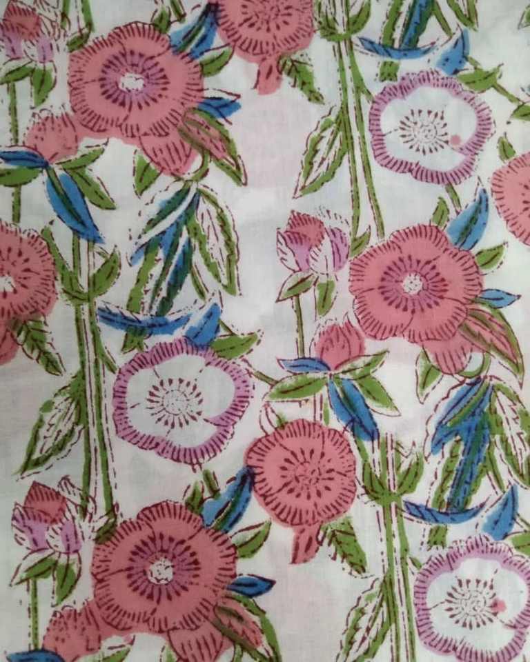 Summer Lightweight Woven Hand Block Printed Quick-Dry Cotton Voile Fabric for Boys' Shirts Suits Dresses Bags Curtains Lingerie