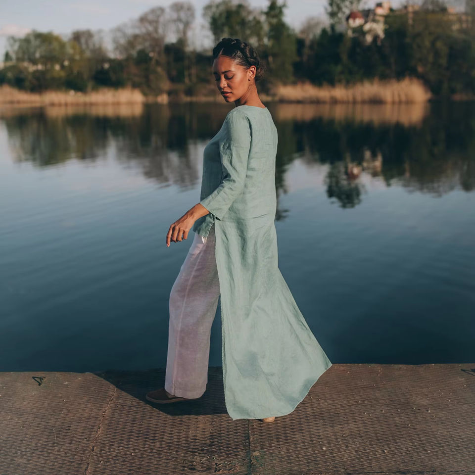 Dusty Turquoise Linen Tunic Top Dress