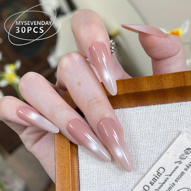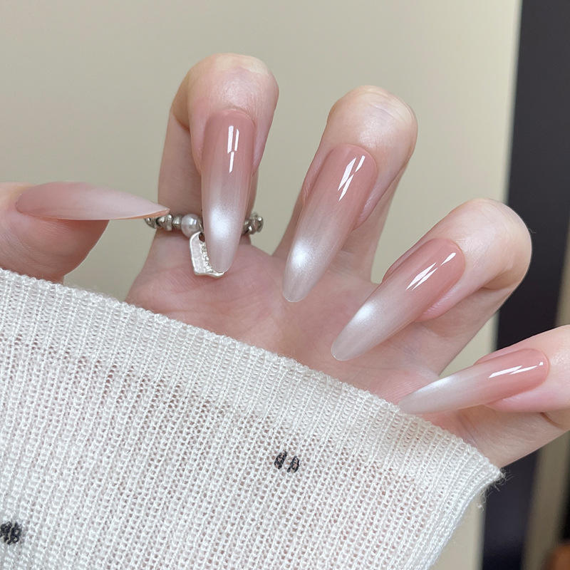 Summer Long High-end Nude Cat Eye Nail Tips Hot Girl Pure Desire Handmade Wearable Fake Nails