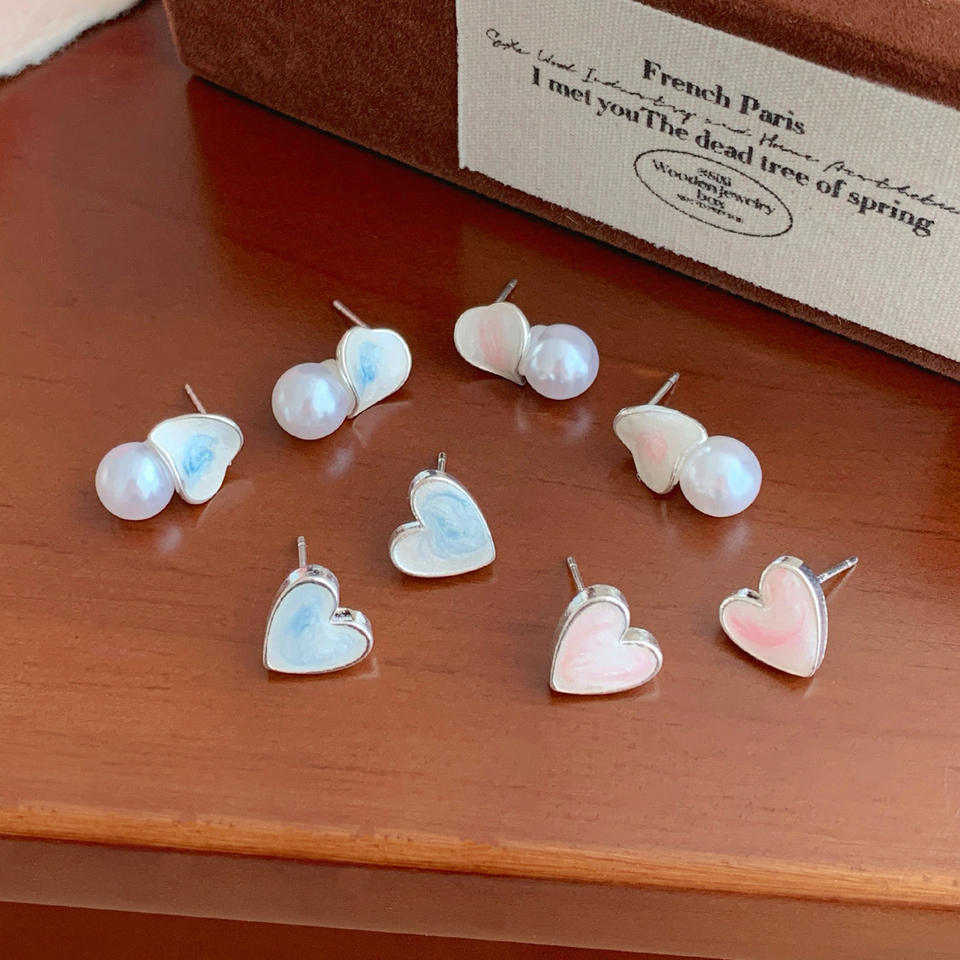 Summer Luxury Advanced Female Silver Needle Design Blue Halo Dripping Oil Love Bow Earrings Fashion Hoop Earings Temperament